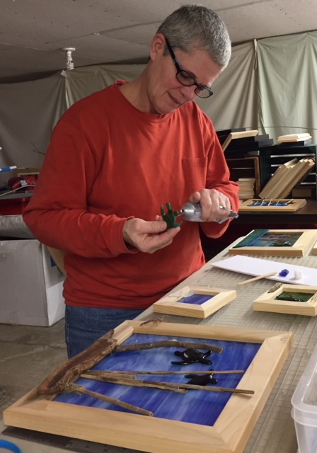 Small pieces of glass fused together to create a larger image. Deb's fused glass wall and window panels are amazing and unique pieces of art.
